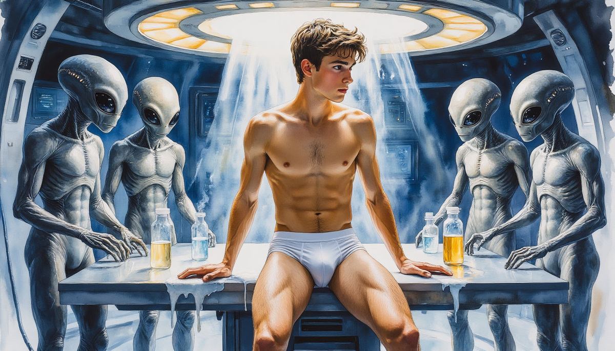 Анатолий лёг спать поздно вечером, уставший после тяжёлого рабочего дня. Сон пришёл быстро, погрузив его сознание в спокойную тьму. Однако вскоре начались странности. Во сне он увидел себя возвращающимся домой поздней ночью. Поднялся на лифте на нужный этаж, открыл дверь квартиры, вошёл внутрь… И вдруг очутился совершенно в другом месте. Осознавая себя уже лежащим на незнакомом холодном металлическом столе, Анатолий почувствовал сильный дискомфорт. Его зрение адаптировалось к тусклому синеватому свету, исходящему откуда-то сверху. Взглянув вверх, он заметил фигуры существ, стоящих рядом. Серые, почти прозрачные кожаные оболочки, большие черные глаза и длинные тонкие пальцы. Эти образы были настолько жуткими, что он сразу понял: это визитёры из космоса. Сердце Анатолия забилось учащённо, адреналин хлестнул в кровь. Инопланетяне, кажется, делали какие-то манипуляции над ним, исследуя его организм инструментами, похожими на щупальца и трубки. Он пытался кричать, шевелиться, протестовать п