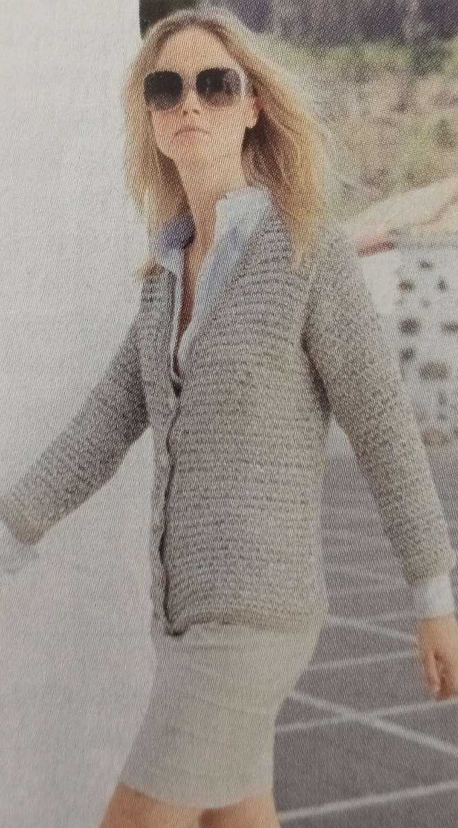 Жакет с узором со снятыми петлями. Всегда модно: жакет в стиле Шанель с трехцветным узором со снятыми петлями создает образ, впечатляющий женственными и классическими нотками. 38/40 (42/44; 46/48). Отличающиеся данные для размеров 42/44 и 46/48 приведены в скобках. Если стоит только одно число, то оно относится ко всем трем размерам. Платочная вязка: лиц. и изн. р. - лиц. п. Узор со снятыми петлями: число петель кратно 4 + 1 + 2 кром. Вязать по схеме. На схеме приведены лиц. и изн. р. Начинать с 1 кром. и петель до раппорта, повторять петли раппорта, заканчивать петлей после раппорта и 1 кром. Повторять с 1-го по 12-й р., выполняя чередование полос. Плотность вязания: 20,5 п. × 48 р. = 10 × 10 см. На спицы №4 набрать бежевой нитью 99 (107; 115) и спицами №6 связать 1 изн. р. изн. Этот ряд не учитывается в дальнейших расчетах. Затем вязать узором со снятыми петлями. Через 34 см = 164 р. (32 см = 154 р.; 30 см = 144 р.) от наборного края закрыть с обеих сторон для пройм 1 раз 12 п. = 75