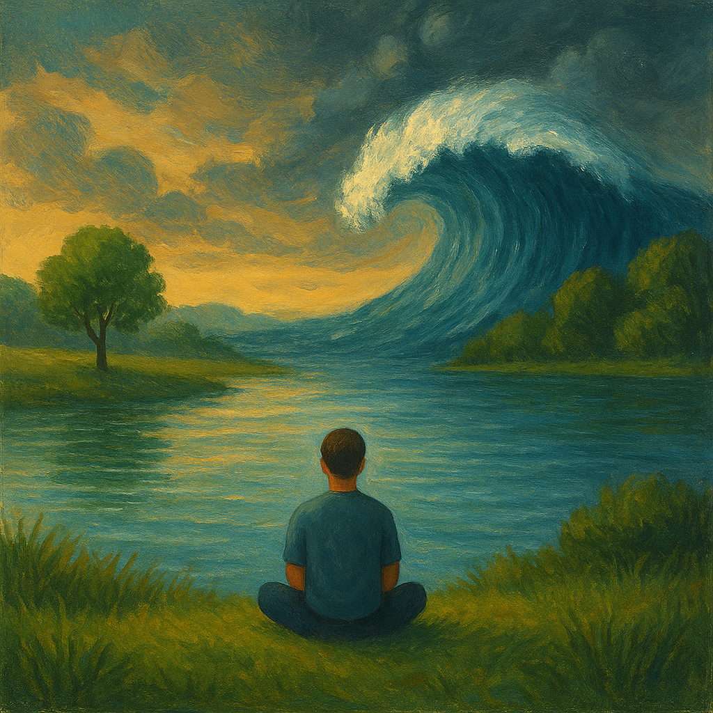 Сама по себе жизнь не создаёт стресса. Она просто разворачивается — как река, которая течёт своим естественным путём. Но стоит уму вмешаться, как в воде поднимается рябь: «почему это со мной?», «как теперь быть?», «а вдруг всё пойдёт не так?» — и спокойствие мгновенно превращается в бурю. Ситуация — лишь капля дождя, упавшая в реку. Реакция — это волна, которую поднимает ум. И чем сильнее мы отождествлены с этой волной, тем больше кажется, что нас захлёстывает жизнь. Взять, к примеру, простую сцену: кто-то резко ответил вам на улице. Если внутри — пространство осознанности, вы просто видите, что человек вспыхнул, возможно, из своей боли, спешки, страха. Всё спокойно проходит сквозь вас, не оставляя следа. Но если ум мгновенно цепляется — обида, раздражение, желание ответить — то ситуация превращается в стресс. Хотя, по сути, ничего не произошло — просто звуки, просто слова. Стресс всегда рождается внутри — из неконтролируемой реакции. Когда внимание сливается с мыслями и эмоциями, т