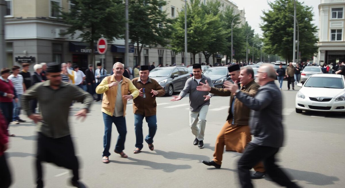 Началось всё в субботний вечер, в одном из спальных районов крупного города. По словам очевидцев, к закату на небольшой перекрёсток подтянулась компания — 20–30 человек. Судя по речи, музыке и флагам, которые мелькали у некоторых в руках, это были гости города, вероятно, выходцы из стран Центральной Азии. Ребята включили громкую колонку, выстроились в круг и начали плясать — кто-то снимал на телефон, кто-то махал руками машинам, предлагая остановиться «на пару минут». Но «пара минут» растянулась: поток машин застопорился, водители нервничали, кто-то пытался объехать по встречной, отчего ситуация стала опасной.