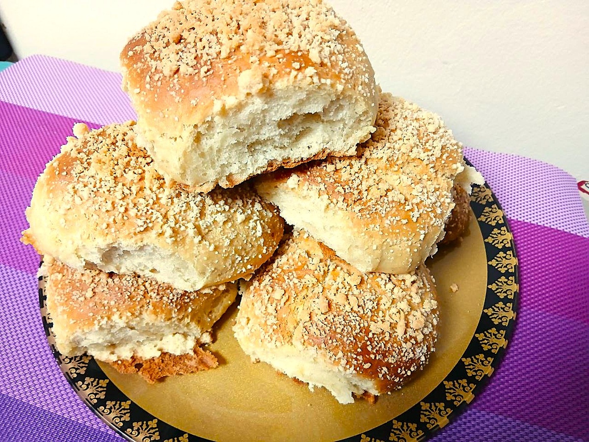 Я люблю печь эти булочки, когда хочу чего‑то мягкого и домашнего, с хрустящей сладкой крошкой сверху. Тесто получается нежным и воздушным, а мучная посыпка — как лёгкая россыпь, которая тает на языке. Готовлю быстро и без лишних сложностей: всё смешиваю прямо в миске, даю тесту подняться, формую колобочки и щедро посыпаю — идеально к утреннему чаю.