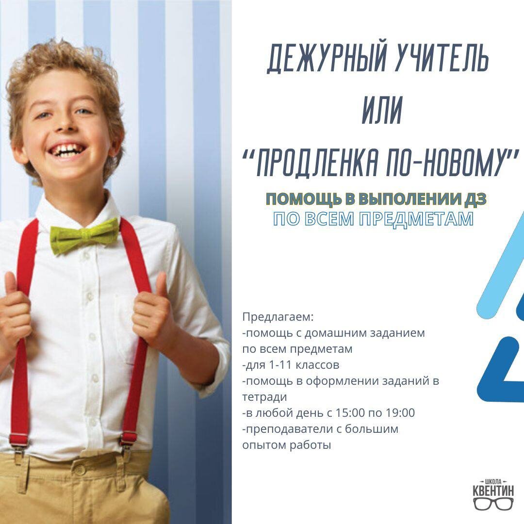 🌟 Дежурный учитель в школе Квентин: Ваш надежный помощник в учебе! 🌟 Дорогие родители, мы знаем как важно для вас, чтобы ваши дети справлялись с учебной нагрузкой. Именно поэтому в школе Квентин мы запускаем уникальную услугу — дежурный учитель! 🕒 Когда? С 13 октября по 17 октября С 15:00 до 19:00 наши талантливые учителя-репетиторы готовы помочь вашим детям с выполнением домашнего задания. БЕСПЛАТНО 🤩 📚 Как это работает? Дети могут приходить в любое время в указанный промежуток и находиться в комфортном пространстве нашей школы, где царит атмосфера поддержки и сотрудничества. Они смогут работать над своими заданиями, общаться с друзьями и получать помощь от опытных педагогов. 👦 Пример из жизни: Артем приходит в 15:15, делает русский язык, затем идет попить чай и пообщаться с друзьями. В 16:00 он возвращается и занимается математикой. Ваш ребенок не привязан к строгому расписанию — он сам выбирает, когда и что делать! 💰 После пробного периода стоимость услуги составит вс