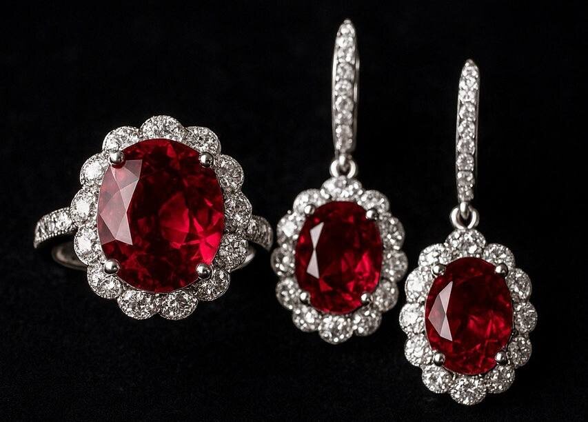 Ювелиры часто создают эксклюзивные изделия, сочетая рубин с другими драгоценными камнями, металлами и необычными формами огранки.