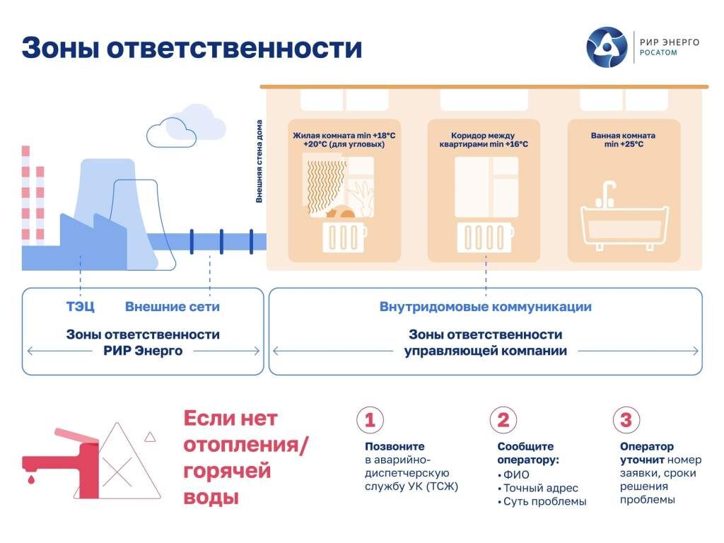 Курский филиал «РИР-Энерго» опубликовал разъяснения по вопросам, связанным с началом отопительного сезона. При отсутствии тепла в квартирах причина может заключаться в засорении радиаторов или необходимости стравливания воздуха из системы. Компания подчеркивает, что зона ответственности «РИР-Энерго» ограничена поставкой тепла до стены многоквартирного дома. Все вопросы, связанные с работой внутридомовых систем, включая неравномерный прогрев радиаторов, холодные батареи в отдельных помещениях, а также проблемы с циркуляцией горячей воды, находятся в компетенции управляющих компаний, ТСЖ или ЖСК. В случаях, когда для решения проблемы требуется участие специалистов «РИР-Энерго», управляющая организация должна направить в адрес компании соответствующую заявку для проведения совместной проверки.