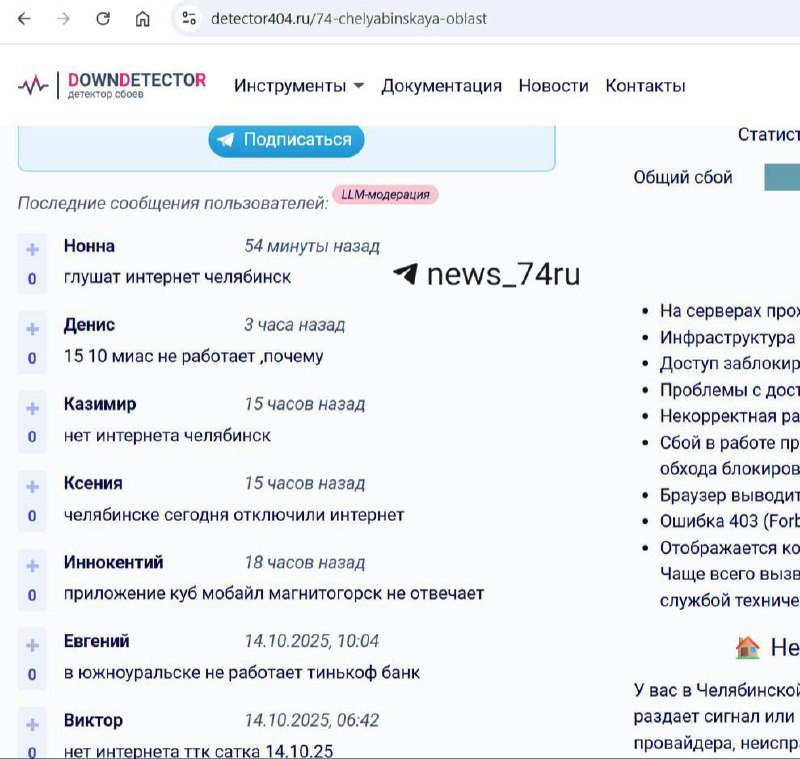 По данным пользователей сервиса DownDetector, «в Челябинске глушат интернет»