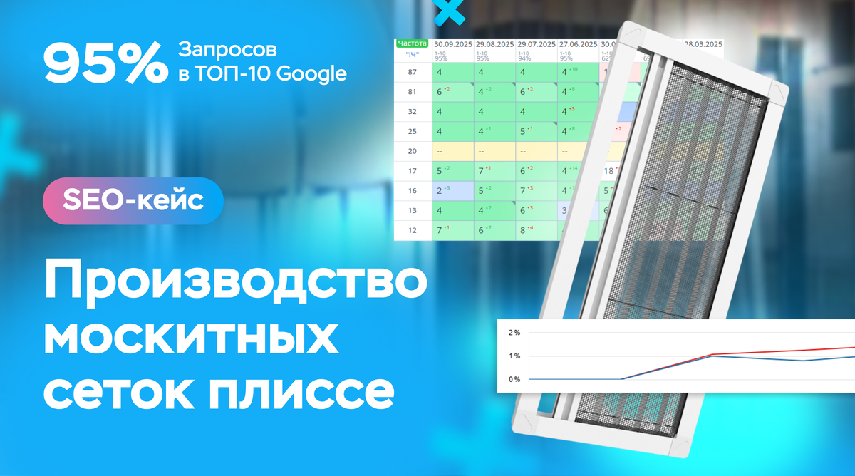 Компания “Технология Плиссе” стала клиентом нашего агентства в феврале 2025 года. На тот момент 54% поисковых запросов из семантического ядра находились в ТОПе Яндекса, а количество посетителей на сайте компании равнялось 22. Клиенту же хотелось вывести сайт в ТОП по большему числу ключевых фраз, увеличить количество посетителей и побудить их делать заказы. Высокочастотные фразы в ТОПе: “москитная сетка плиссе” (2 806), “сетка плиссе” (4 865) и другие. Этот проект показал, что даже сайт с минимальным контентом и техническими ошибками может выйти на топовые позиции и начать привлекать новых посетителей. Теперь сайт “Технология Плиссе” уверенно занимает первые строки Яндекса, а компания получает стабильные заказы. Напишите нам и получите бесплатную консультацию от SEO-специалиста. Покажем, где теряете трафик и клиентов: Добавили новостей и вывели сайт в ТОП: х35 посетителей и 50% конверсии у школы иностранных языков