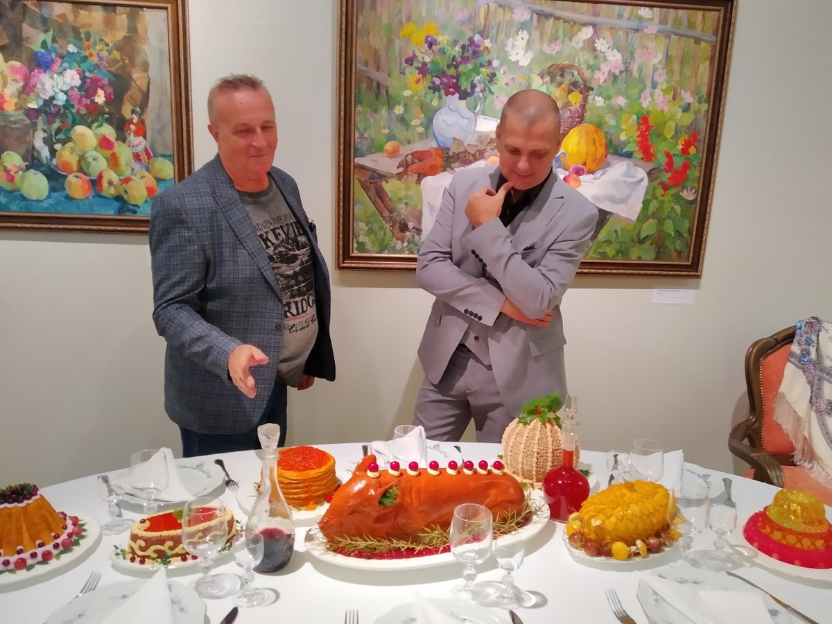 Настоящим подарком стала экспозиция, представленная мировой знаменитостью, кулинаром из Москвы Алдисом Бричевсом. Он продемонстрировал историческую инсталляцию гастрономических блюд разных эпох. Из искусственных материалов, которые мастер держит в секрете, он создает абсолютно точные внешние копии оригиналов.