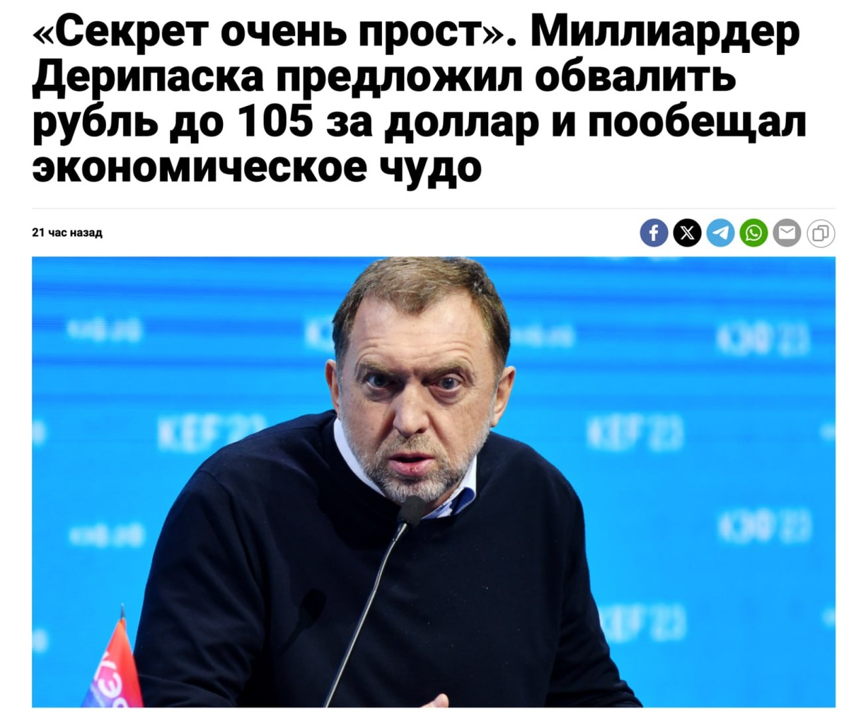 Дерипаска предложил обвалить рубль до 105 за доллар: что это значит для экономики России — Олег Дерипаска заявил, что ослабление рубля до