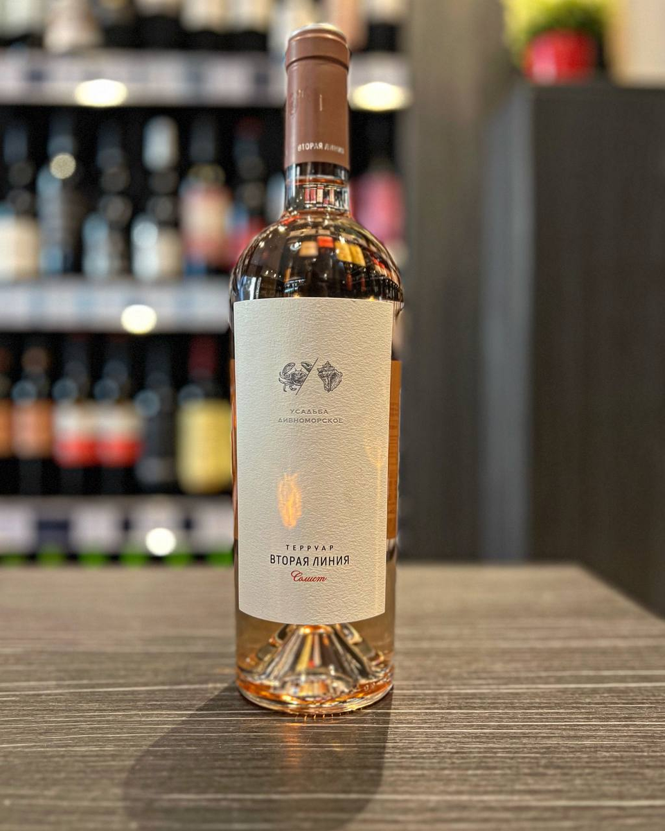 "Вторая Линия" - розовое сухое краснодарское вино с элегантным ароматом и освежающим вкусом, производится из винограда сорта Марселан. Виноград культивируется на каменистых склонах, спускающихся к побережью Черного моря, в окружении сосен.