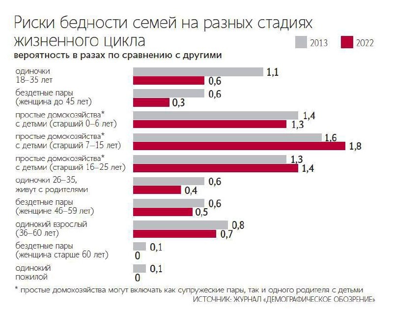 Самый высокий риск бедности в России — у семей с детьми-школьниками — исследование РАНХиГС. При этом самыми уязвимыми оказались неполные семьи с детьми, у них риск оказаться за чертой бедности в 2 раза выше среднего по стране.