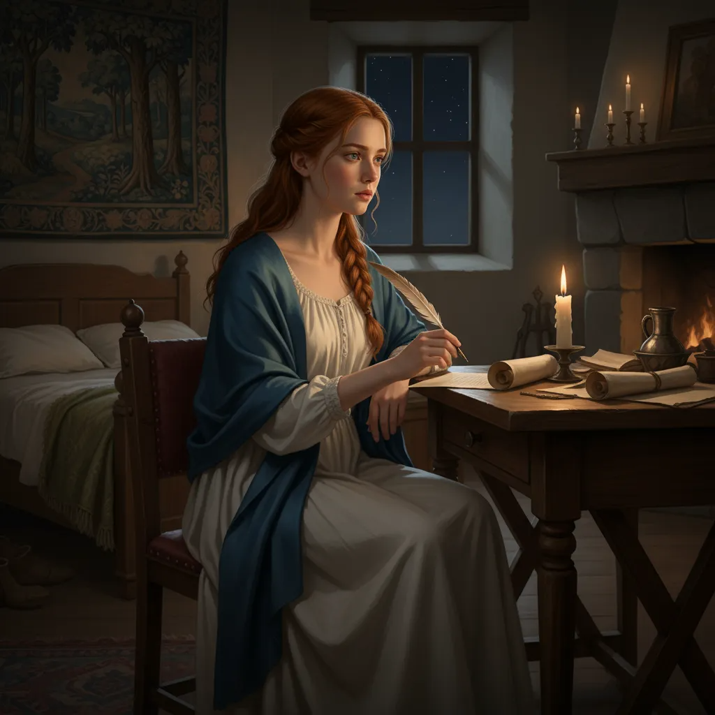 Санса приняла ванну и, отпустив служанку, села за стол. Взяв перо, она задумчиво смотрела на пергамент. А затем рука пошла сама.
