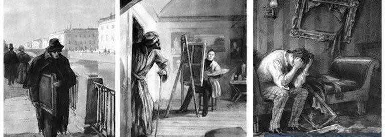 Некий художник Чартков, умный, ранимый, тонко чувствующий искусство, случайно обнаруживает в “картинной лавочке” странный портрет старика с удивительно живыми глазами.