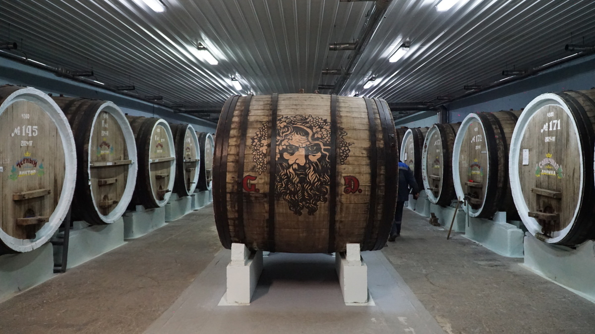 Следующий этап путешествия приводит нас в подвал №1, возведённый в 1968 году. Здесь гости знакомятся с настоящим чудом – огромными дубовыми буттами, в которых происходит выдержка вина.