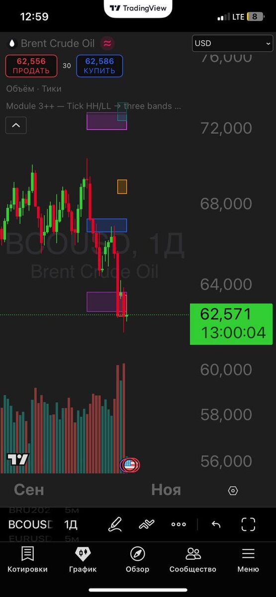 Нефть , судя по дневному, очень хочет на 58