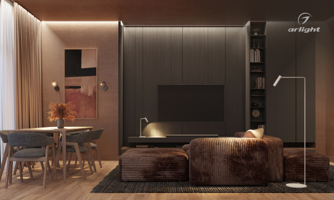 Многослойное освещение обеспечивает разумный и современный подход к организации жилого пространства. Комбинация нескольких типов света — основного, рабочего, акцентного и декоративного — позволяет решать разные задачи, создавать атмосферу и даже визуально менять восприятие пространства. Рассказываем, как именно это работает! Причина №1: функциональность Свет позволяет разграничить пространство и выделить рабочую локацию или, например, кухню с обеденной зоной. Факт: разные задачи требуют разного освещения. Общее, которое можно организовать с помощью светильников ORIENT FLAT, нужно для того, чтобы легко и безопасно ориентироваться в пространстве. Рабочее подойдет для каких-то небольших дел, где нужно яркое направленное освещение, — вроде шитья или чтения книги. В этом случае есть смысл обратить внимание на настольные светильники VERDI. Все это позволяет в разное время включать именно те источники света, которые необходимы, создавая для себя и близких комфортные условия. Причина №2: атмос