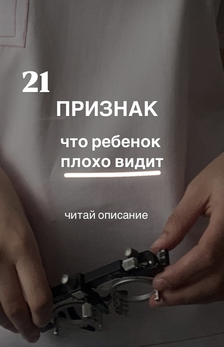 Если какой - то из признаков вас беспокоит, то приводите ребенка на прием, чтобы убедиться, что все хорошо или же начать лечение вовремя 🙏 1) близко подходит к телевизору и протестует, когда просят дальше отойти 2) наклоняется над телефоном, книгой, близко подносит к глазам 3) щурится 4) отказывается читать надпись издалека, которую видят остальные 5)при вашем запросе прочитать вдаль одним глазом может, а другим отказывается 6) примеряет очки других 7) просится сесть поближе к доске 8) ошибки при списывании к доске 9) плохой почерк 10) не может долго писать, читать - устает 11) не любит собирать мелкие детали, конструктор, рисовать – устает 12) трет глаза 13) частые ячмени, халязионы 14) часто краснеют глаза без повода 15) часто болит голова 16) жалуется на глазные боли 17) повышенная слезоточивость 18) слишком чувствителен к свету 19) часто моргает и зажмуривает глаза 20) постоянно или периодически присутствует наклон или поворот головы 21) прикрывает один глаз, когда сиди