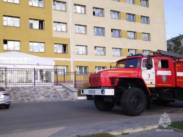 Сотрудники МЧС России провели тренировку в Старооскольском геологоразведочном институте, в ходе которой отработали эвакуацию людей из студенческого общежития и ликвидацию пожара в этом здании.
