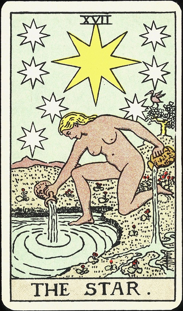После оглушительного грохота, хаоса и освобождающего разрушения, которое принес нам Крах Башни (XVI), наступает космическая тишина. Пыль улеглась, буря прошла, и на чистом ночном небе зажигается путеводная Звезда (XVII). Эта карта - целительный бальзам для души, тихий шепот Вселенной, который говорит: "Все будет хорошо". Если Башня - это кризис, то Звезда - это надежда. Если Башня - это конец иллюзий, то Звезда - это обретение истинной веры. Это карта чистоты, вдохновения, спокойствия и глубокой связи с божественным планом. Она появляется тогда, когда мы, лишившись всего наносного, остаемся наедине с собой - уязвимые, но настоящие. Давайте же рассмотрим ее сияющие символы, чтобы понять ее глубокое послание. Аркан Звезда (номер 17) - это архетип надежды, исцеления, духовного руководства и оптимизма. Это тот момент в путешествии, когда после тяжелейших испытаний герой находит свой внутренний компас, свою путеводную звезду, которая ведет его дальше. Эта карта не обещает мгновенного матер