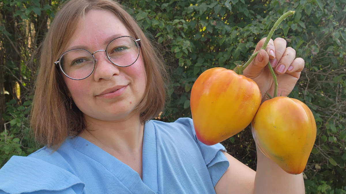 Привет, друзья. Знакомьтесь, герой моего сезона — томат «Сердце Абрикосовой Зебры». Когда я впервые увидела эти семена, не могла поверить, что такие красавцы вырастут в моей большой теплице. Реальность превзошла все ожидания. Это не просто помидор. Это — произведение искусства. И сейчас я докажу вам это не только словами. Сорт прибыл к нам из Франции, от селекционера Жана-Клода Бошера. Он скрестил знаменитую «Красную Зебру» и мясистое «Бычье сердце». Результат? Идеальный томат красоты и вкуса. Вот что меня покорило: А теперь — главный секрет сорта. Внизу куста мои «сердца» набирали по 500-600 граммов! Представьте эти гигантские, полосатые сердца, висящие на ветке. У меня было 3 куста. В следующем году будет больше. Однозначно. «Сердце Абрикосовой Зебры» — это томат для гурманов и эстетов. Он для тех, кто хочет не просто урожая, а настоящего праздника и восхищения. Он оправдывает все хлопоты с формировкой. А вы выращивали такие диковинные сорта? Какой томат поразил вас в этом году