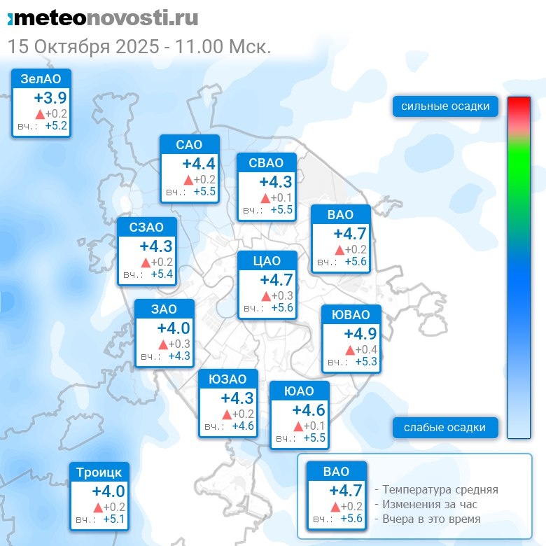 В 11:00 в Москве было от +3.6°C до +5.6°C, средняя температура +4.5°C #погода #Москва #осень #температура #15октября #среда
