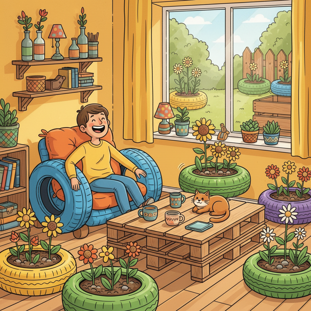Признавайтесь, у кого в кладовке или на балконе годами пылятся "сокровища"? Сломанная мебель, старые покрышки, вышедшая из моды одежда… Знакомая картина, правда? И вроде бы выкинуть жалко – "вдруг пригодится", а место занимают изрядно. Я тоже долгое время был хранителем этих залежей, пока не понял: хлам – это не приговор, а возможность для творчества! В этой статье я расскажу вам о крутых переделках, которые не только помогут навести порядок, но и преобразят ваш дом, подчеркнув вашу индивидуальность. Почему быть "мусорным гением" – это здорово? Покрышки: от автохлама до стильного элемента декора Начнем с распространенного материала, особенно в гаражах – старых покрышек. Казалось бы, что с ними делать? А вот и идеи: Поддоны: простота, практичность, красота Деревянные поддоны – универсальный материал для тех, кто любит мастерить. Они прочные, легкодоступные и поддаются обработке. Старая мебель: дайте ей второй шанс! Не спешите избавляться от старого комода или шкаф