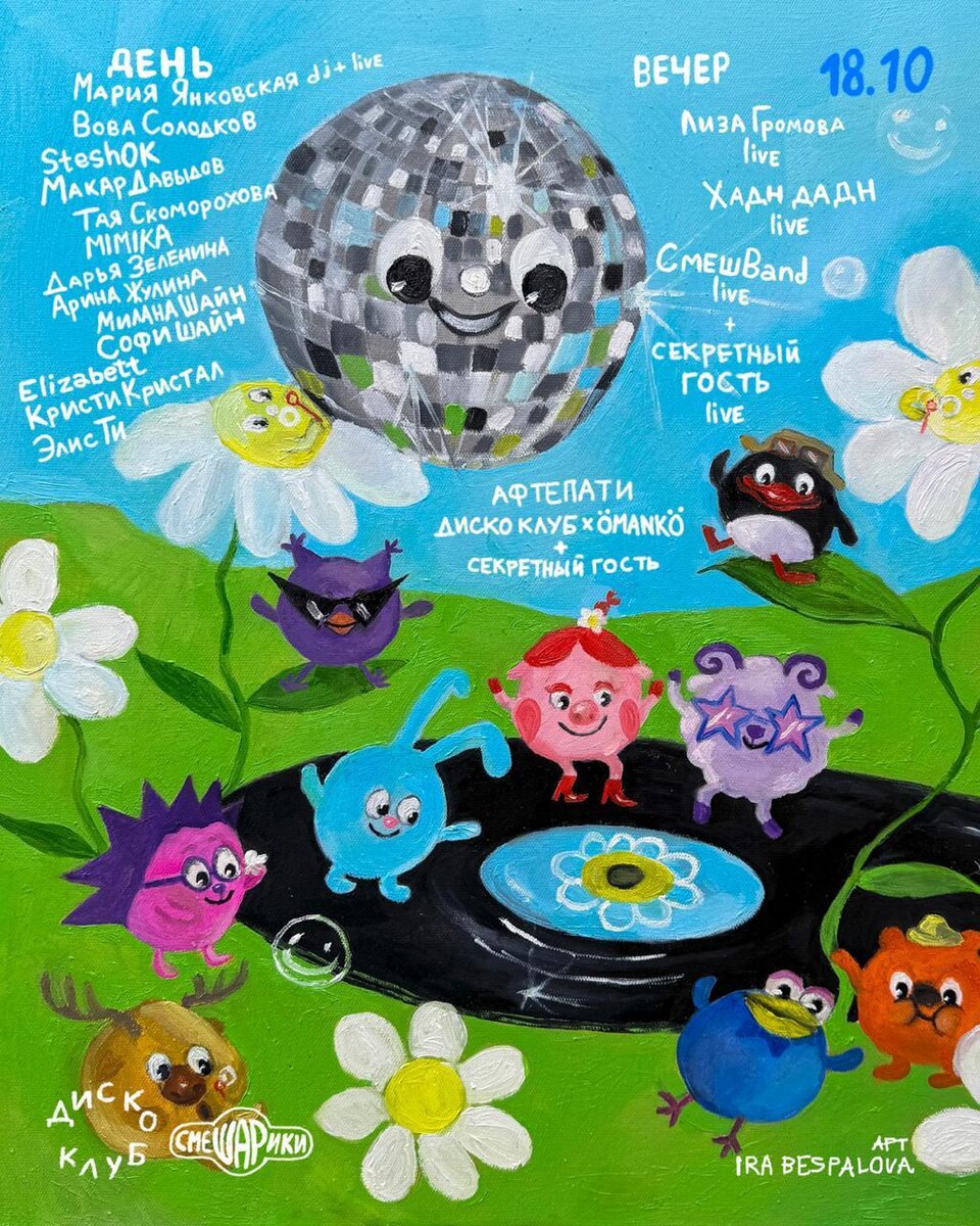 🎫 – СМЕШАРИКИ: ТАНЦОР ДИСКО + ДИСКО КЛУБ: вечеринка в Москве 🎤 – дневная часть: Мария Янковская, Вова Солодков, SteshOK, Макар Давыдов, Тая Скоморохова, MIMIKA, Дарья Зеленина, Арина Жулина, Милана Шайн, Sofi Shine и др. 🎤 – вечерняя часть: Лиза Громова, Хадн Дадн, СмешBand + секретный гость + подтвердила свое участие группа конец солнечных дней 📍 – «ДК Кристалл», Москва, Самокатная ул. д. 4 стр. 11 🗓 – 18 октября 💵 – день + вечер – 2 500 руб. (0+), день + вечер + ночь – 2 500 руб. (18+), ночь – 1 000 руб. (18+) 🔗 – билеты #марияянковская #вовасолодков #steshok #макардавыдов #таяскоморохова #mimika #дарьязеленина #лизагромова #хадндадн #смешband #дккристалл #дискоклуб #смешарики 👉 Список концертов: октябрь • ноябрь • декабрь @mainstreamusic
