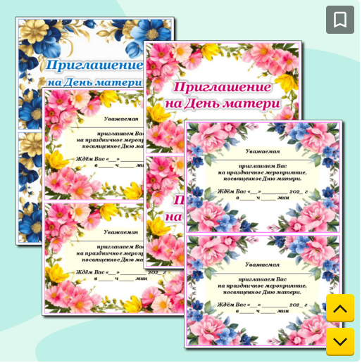 Данная разработка представляет собой набор приглашений, созданных с особой теплотой и уважением к матери. Разработка включает в себя 5 разных цветочных дизайнов, выполненных в удобном и компактном формате. Первые пять вариантов предполагают двустороннюю печать, где есть лицевая сторона и оборотная сторона с текстом. Если вам это не подходит, то вы распечатаете приглашения для односторонней печати, они находятся в конце разработки. На листе А4 размещены два приглашения. Благодаря разнообразию цветовой гаммы вы сможете подобрать приглашение, идеально соответствующее вашим предпочтениям. Каждый вариант приглашения по-женски нежен и привлекателен. Приглашения легко распечатать и заполнить от руки, добавив персональное обращение. Также вы можете впечатать на компьютере имя приглашенной женщины, так как имеется редактируемый файл. Совет. Если при печати формата PDF у вас остаются широкие поля, выберите ориентацию «авто». Оформление к празднику скачать здесь Поздравительные открытки скачать з
