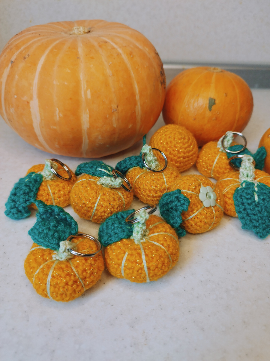 🍂🎃 Приветствую вас, любители рукоделия! 🎃🍂 Сегодня предлагаю создать замечательный брелок в виде тыквы, связанный крючком. Это отличный аксессуар для осеннего сезона, который подойдет как для ключей, так и для сумки. ### 💡 Материалы: - Пряжа оранжевого цвета (основной цвет) - Пряжа зеленого цвета (для лозы и листиков) - Крючок (обычно 2.5-3.5 мм в зависимости от толщины пряжи) - Наполнитель (синтепон, если хотите сделать его объёмным) - Ушко для брелка или цепочка ### 🧶 Пошаговая инструкция: 1. **Основное тело тыквы:** - Наберите 6 воздушных петель и замкните их в круг. - Вяжите по кругу столбиками без накида (СБН), прибавляя по 2 СБН в каждый сектор (по кругу будет 12). - Далее вяжите по 2 СБН через один (18 СБН). - Продолжайте вязать до необходимых размеров, а затем убавляйте количество столбиков. 2. **Создание формы тыквы:** - Провязав достаточное количество рядов, наполняем тыкву синтепоном и продолжаем убавлять. - Когда останется несколько петель, стян