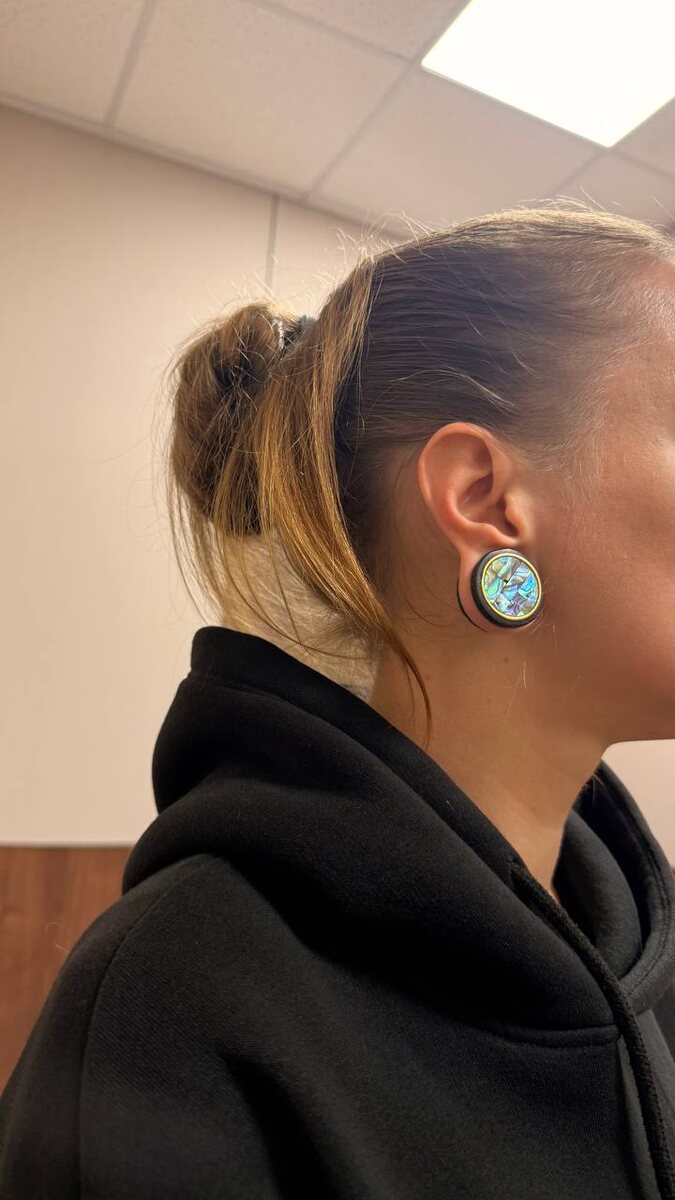 Встретила девушку с красивыми плагами в ушах. Плаг (украшение) — тоннель без сквозного отверстия, украшение, которое вставляется в прокол большого размера на различных частях тела Из дерева, с витражом из ракушек, куплены в Великобритании. Красивые! Как относитесь к тоннелям в ушах?