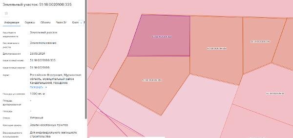 Название: земельный участок с кадастровым номером 51:18:0020106:335, площадью 1000 кв.м., категория земель – земли населенных пунктов