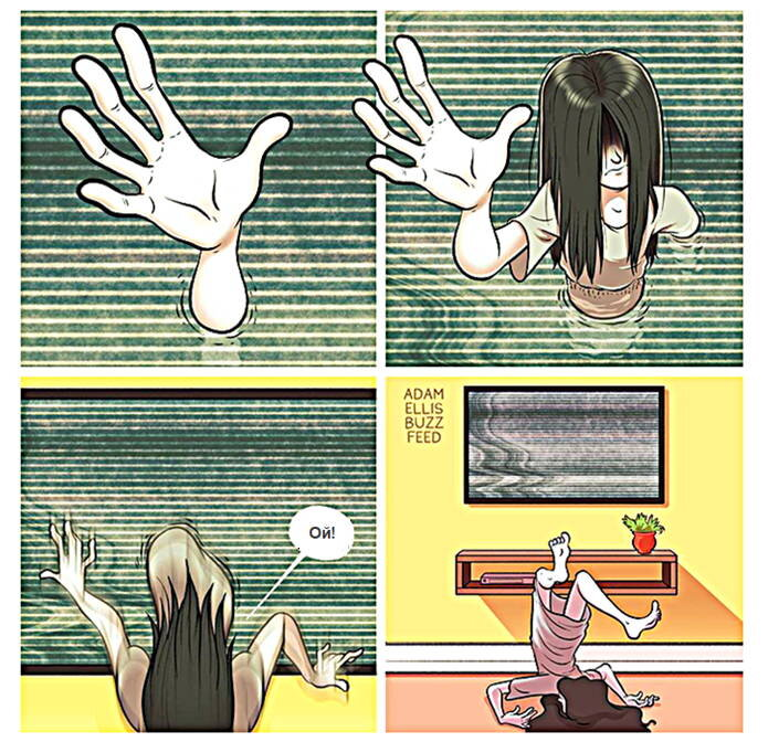 Это уже седьмой выпуск пугалок от американского карикатуриста. Адам Эллис известен в сети прежде всего своими юмористическими зарисовками. На канале уже выходило несколько таких весёлых сборников. О жизни холостяка. О любви к аниме и видеоиграм. О замурчательных пушистиках. Марафон кино - пародий. Этот художник любит вкусно поесть и остроумно пошутить. Пример его типичного комикса: Однако сейчас юморист со стажем по настоящему увлечён мистикой и создаёт страшные истории. В творчестве Адама Эллиса достаточно много профессионально выполненных жутких историй. Они способны напугать зрителя не обилием кровавых сцен или маньяков в масках. Нет. Это скорее мистика, необъяснимые встречи с потусторонними существами или загадочными явлениями и т.п. Для этого выпуска выбрала 2 мини и одну большую историю, для тех, кто любит пощекотать себе нервишки. Во всех герои напрямую столкнулись с убийцами. Финал же остался открыт, мы можем лишь строить догадки, удастся ли им выжить. Предлагаю начать с лёгкой