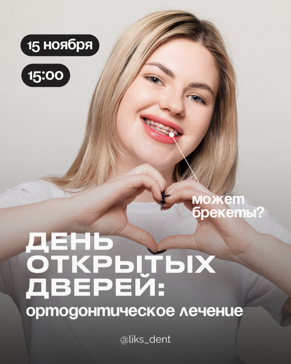 День открытых дверей в клинике Ликс Дент Приглашаем вас в нашу клинику на день открытых дверей, посвящённый ортодонтическому лечению! • 15 ноября в 15:00 • Владимирский проспект, 7 Программа мероприятия: 🦷 Лекция от наших ведущих ортодонтов 🦷 Разберём реальные клинические случаи наших пациентов 🦷 Развеем все мифы и ответим на ваши вопросы 🎁 Подарки и бонусы для гостей мероприятия: • Бесплатная консультация любого специалиста при записи в день мероприятия • Скидка 5% на брекеты или элайнеры • Скидка 10% на терапевтическое лечение и на удаление зубов • Ортодонтические средства гигиены 🎉 Розыгрыш диагностики для установки брекетов или элайнеров! А также — три счастливчика получат возможность пройти ортодонтическую консультацию прямо в день мероприятия Вход бесплатный, но количество мест ограничено — запись по телефону +7 921 399-41-17 или через личные сообщениях 🤍