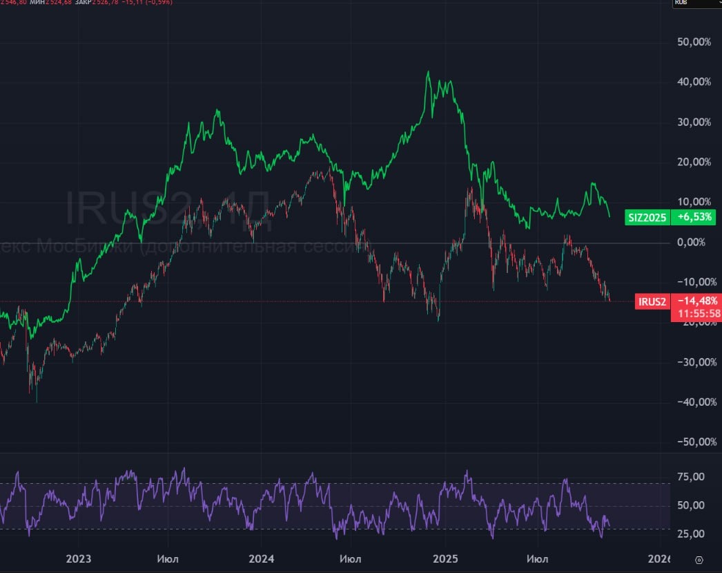 🏦 Индекс Мосбиржи 🟢 Нефть на наш индекс я уже накладывал вот тут, показывал, что корреляция с индексом есть. Теперь накладываем на индекс курс доллара. Корреляция тоже прослеживается. 🟢 Вот и имеем по факту, что два фактора давления на наш рынок это Кукл Сильный рубль и Кукл Дешевая нефть. #индекс #рубль #индексмосбиржи #ММВБ #IRUS #MXI #MIX #IMOEXF #bogdanoffinvest