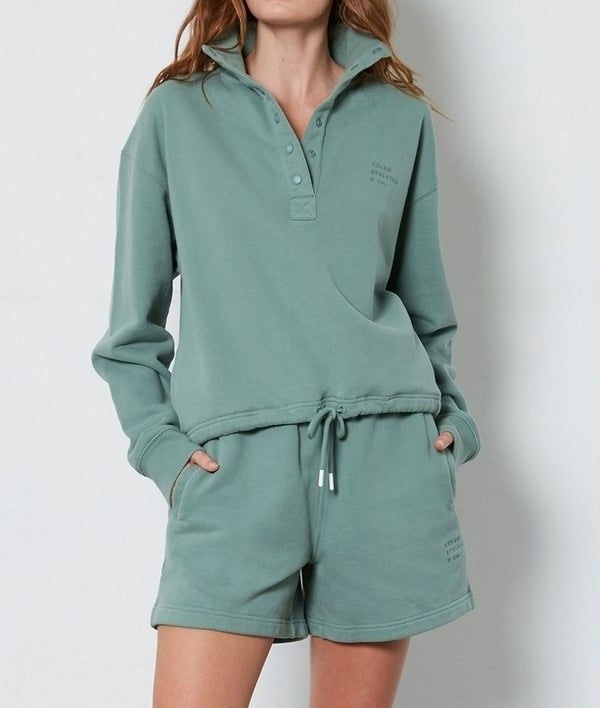 Спущенное плечо. Воротник стойка. Горловина с застежкой на кнопках