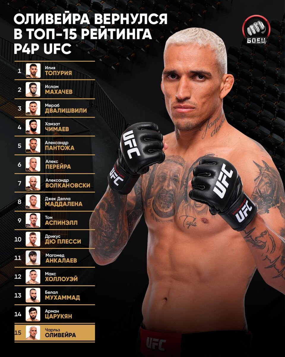 Вот так теперь выглядит обновленный рейтинг Р4Р UFC 🔝📊