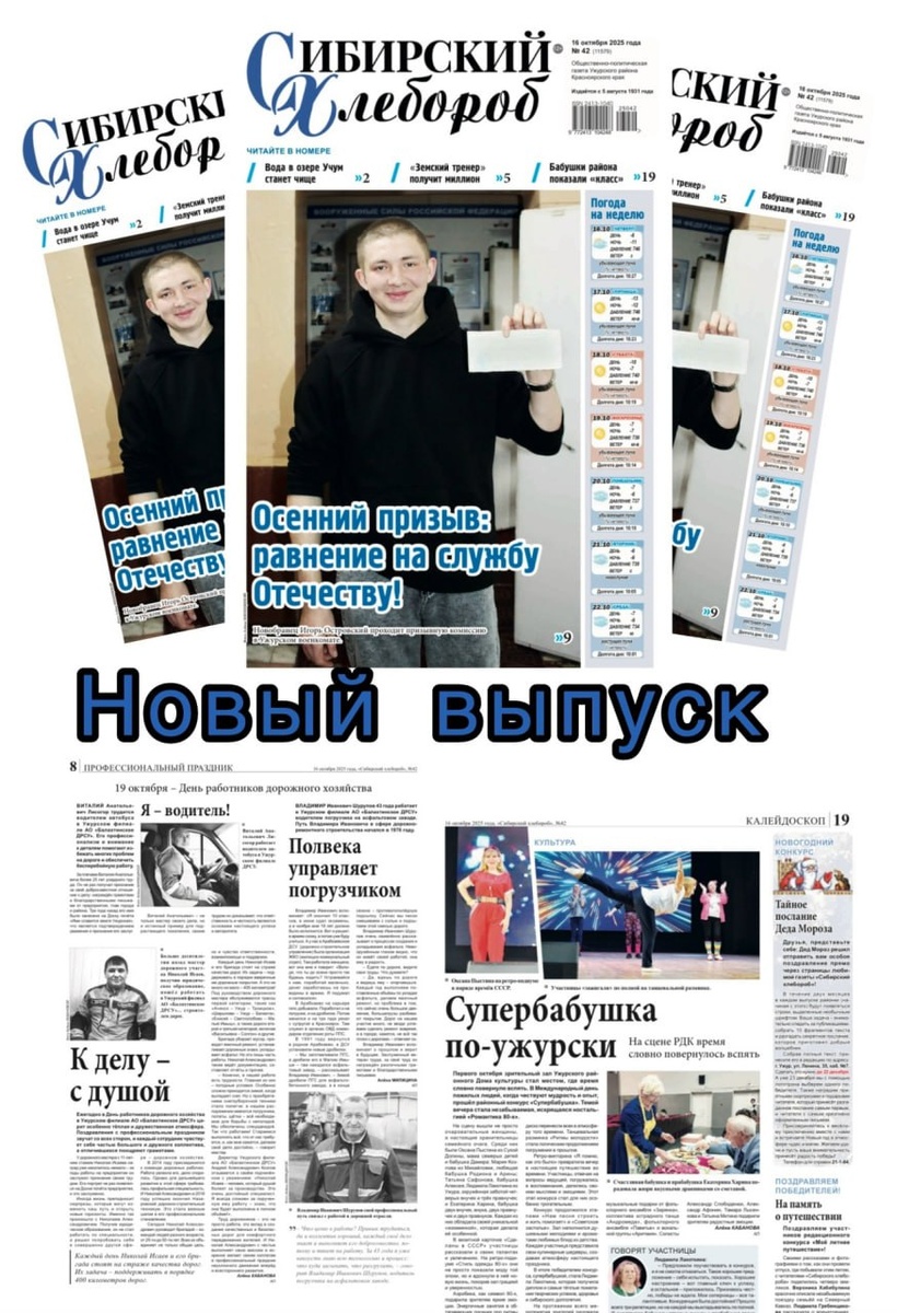 Свежий номер уже готов! 📰 🖌 Новый выпуск газеты «Сибирский хлебороб» от 16 октября! ✅ Что вас ждет в свежем номере? 🔹 Земские тренеры получат миллион рублей! Узнайте подробности о новом проекте поддержки спорта в крае. 🔹 В поселке Озеро Учум активно идут строительные работы: скоро появятся современные очистные сооружения. Подробности строительства читайте в нашем материале. 🔹 Начинается подписной марафон на любимую районную газету «Сибирский хлебороб». Будьте в курсе всех местных новостей вместе с нами! Оставайтесь в центре событий родного района! 🚀