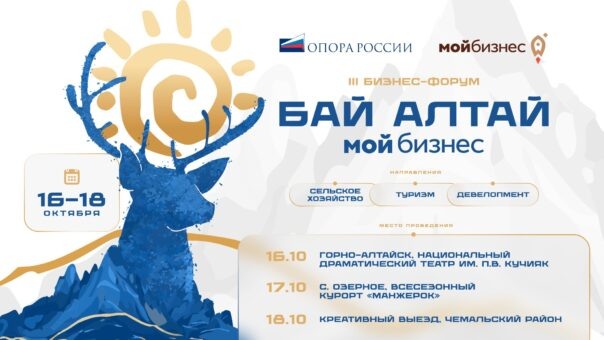 С 16 по 18 октября 2025 года в Республике Алтай состоится Межрегиональный предпринимательский форум «Бай Алтай. Мой бизнес» – ключевое событие года для бизнес-сообщества, органов власти и инвесторов. Форум станет местом обмена опытом, генерации идей и конкретных решений в области развития сельского хозяйства, туризма и девелопмента.