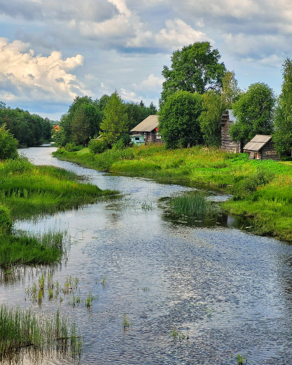 Из Кенозерья мы отправились в Каргополь. Но сначала посмотрели всякое прекрасное в его окрестностях. Конечно, навестили Ошевенский Погост, в который я очень хотела вернуться. И нет, речь идёт не о кладбище. Почему-то для многих это синонимы. ...изначально так называли населённые пункты или церковные комплексы с прилегающими постройками. На Русском Севере до сих пор это в ходу. А кладбища — уже более поздняя история. В общем, Ошевенский Погост — это деревня. И очень живописная. ...список самых красивых в нашей стране. Вид с моста через речку Чурьега на эти домишки на берегу ещё много лет назад разбил мне сердце. Просто какая-то идиллия. И так радостно, что ничего не изменилось — всё на месте. Разве что мост стал поновее. ...более туристическая. Видно, что народ поехал, и появились арт-объекты, информационные стенды, новые музейные экспозиции. Деревянная Богоявленская церковь с колокольней рестарируется. И Ошевенским монастырём начали заниматься. ...сохранилось, но видно, что оно под при