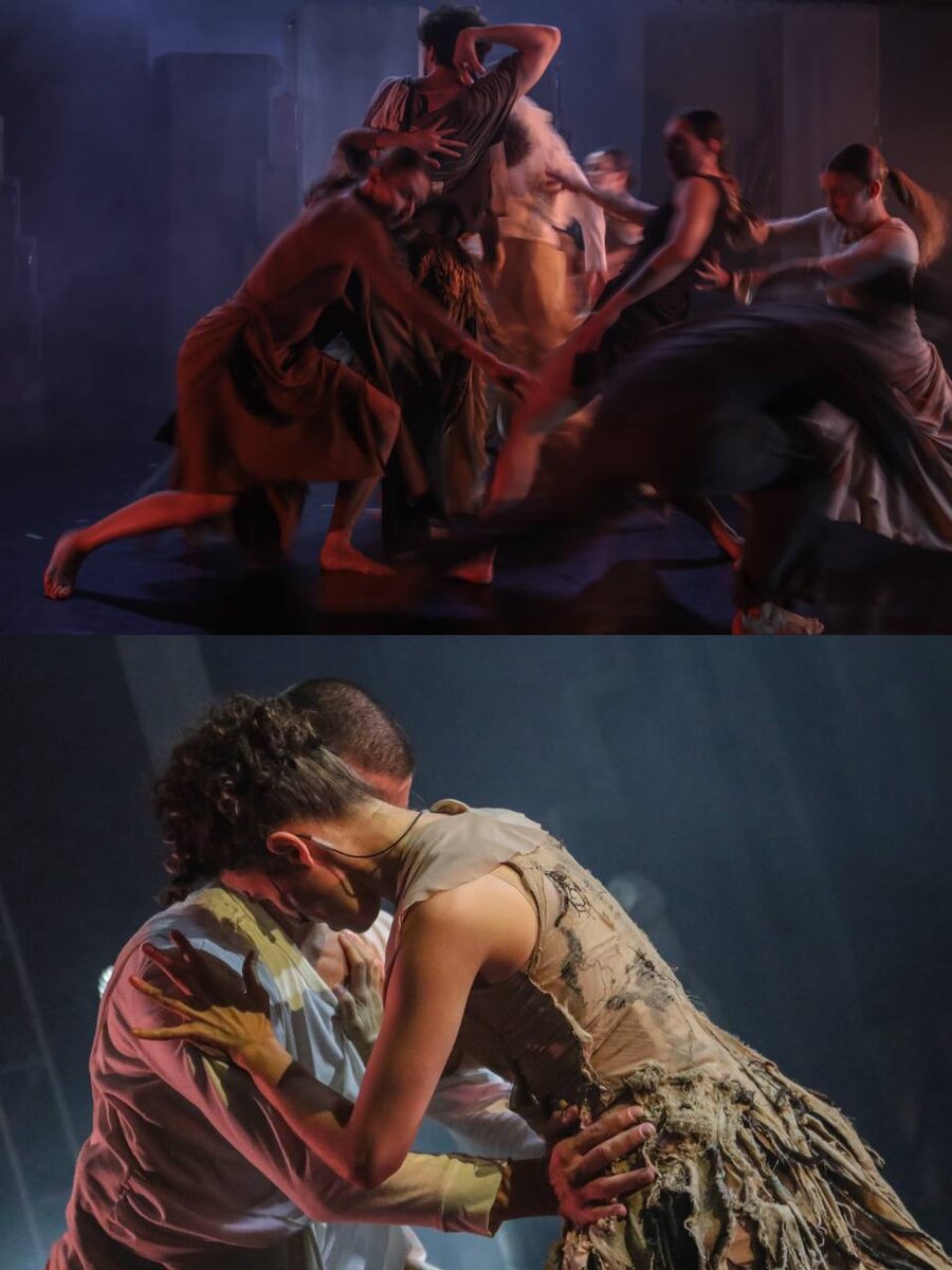 В спектакле объединились танец, физический театр, вокальное искусство и текст.