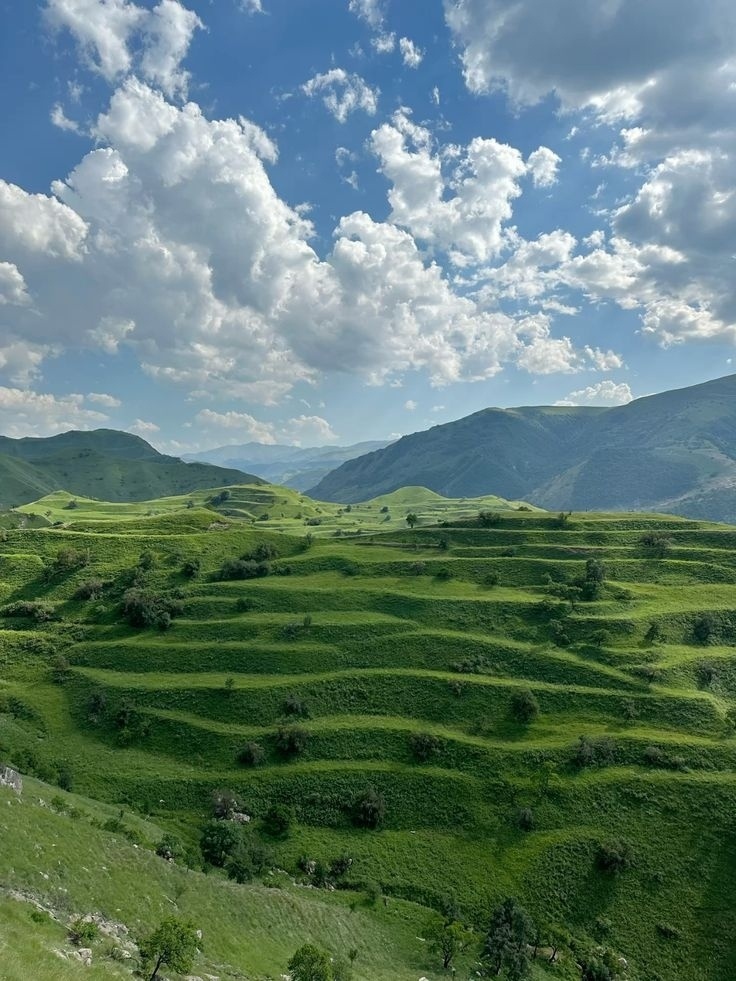 Кажется, будто такие ландшафты можно увидеть только где-то в Азии или Южной Америке… Но нет — они находятся прямо здесь, в сердце горного Дагестана, в Гунибском районе, недалеко от древнего аула Чох. Эти террасные поля были созданы руками горцев сотни лет назад. Люди поднимали камни и землю на спинах ослов, чтобы превратить крутые склоны в плодородные ступени. Сегодня здесь по-прежнему выращивают хлеб, ухаживают за садами и бережно хранят традиции своих предков. Это место — не просто красивый пейзаж, а живая история, воплощённая в гармонии человека и гор. Приезжайте увидеть Чохские террасы своими глазами — они удивят даже тех, кто уже много путешествовал!