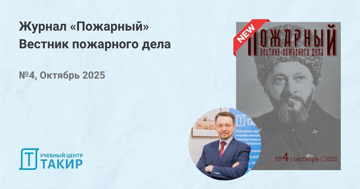 Журнал «Пожарный» в честь 95-летия профессора Абдурагимова Иосифа Микаэлевича! Четвертый номер! Учредитель и главный редактор журнала Князев Павел Юрьевич: 🔙Четвертый номер журнала мы полностью посвятили профессору Абдурагимову в день его юбилея. Пожелаем здоровья, терпения и мужества большому пожарному специалисту!▶️ В номере вы найдете описание трудового пути профессора, его воспоминания и, что особенно важно, публикации его последних по счету статей об огнетушащих веществах и тактике пожаротушения. 🔥 Ключевые темы номера: - Памяти Оскара Моисеевича Тодеса - Колонка главного редактора - Из доклада «горящая Россия». 1991 год - Из воспоминаний - Пожарная тактика - Пожарная техника - Заграничные известия - Пожарный словарь и Завершая разговор 🔗 Читать четвертый номер журнала Поздравляем Иосифа Микаэлевича с праздником и от всей души желаем здоровья и сил, а также сохранять тот самый огонек в глазах и ясность ума, которые так всех восхищают. 📱 УЦ ТАКИР. Подписаться