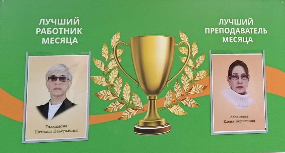 🏆Победителем в номинации «Лучший работник месяца» стала тьютор Центра повышения квалификации Галлямова Наталья Валерьевна, а в номинации «Лучший преподаватель месяца» - Алексеева Елена Борисовна!