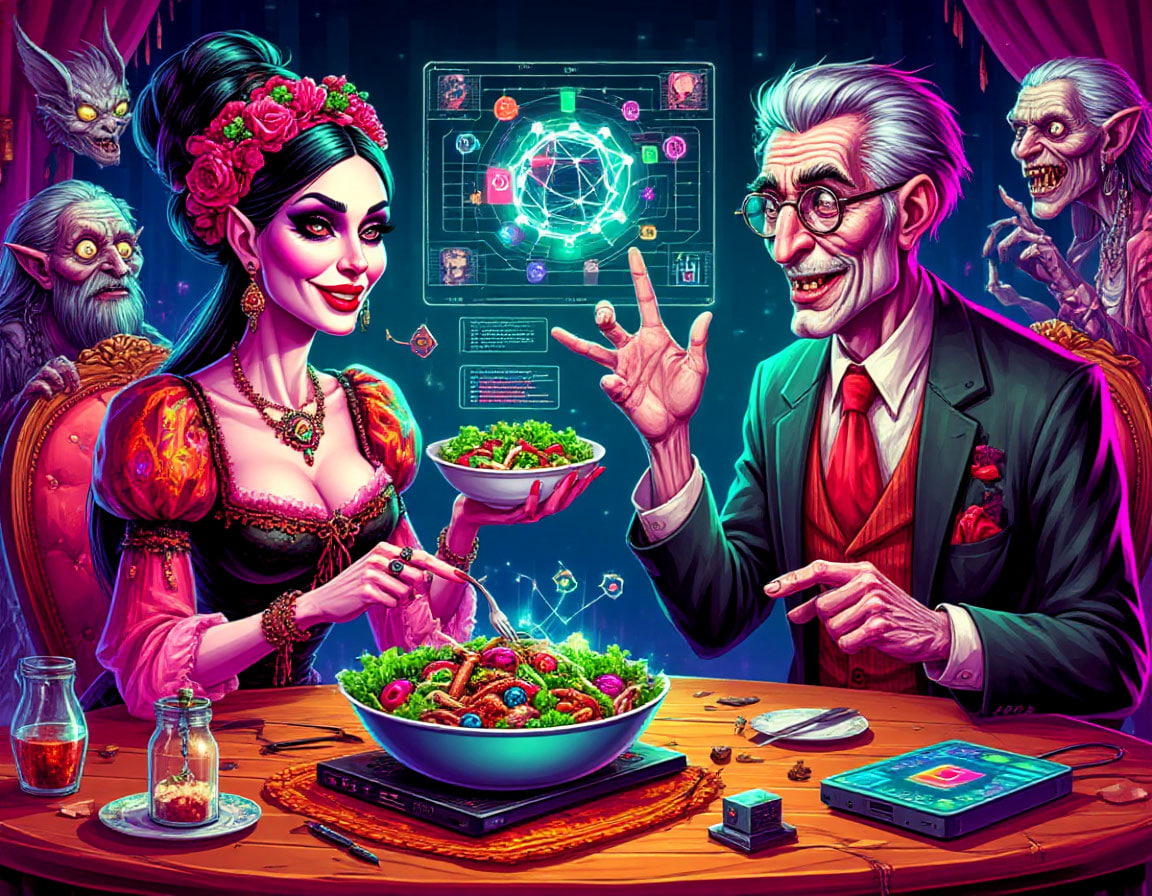 — А давай объединимся! — Кощей щёлкнул пальцами, и из кадиллака выкатился мини-бар. — У тебя трафик, у меня... капиталовложения. Снимем влог! «Два боговеранца: магия и крипта». Будет жарко!