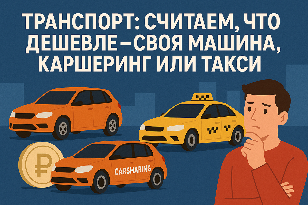 Сейчас я веду канал про домашнюю бухгалтерию и постоянно получаю один и тот же вопрос: что выгоднее - купить машину, пользоваться каршерингом или ездить на такси? Давайте посчитаем вместе. Берите калькулятор, будет интересно.