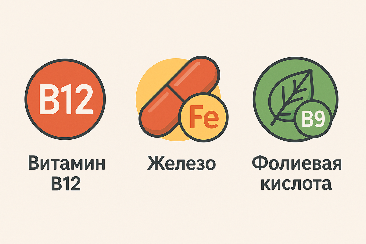 Анемия — это не всегда только «недостаток железа». Часто к ней приводят и дефицит фолиевой кислоты, и нехватка витамина B12. Эти три вещества работают как слаженная команда: