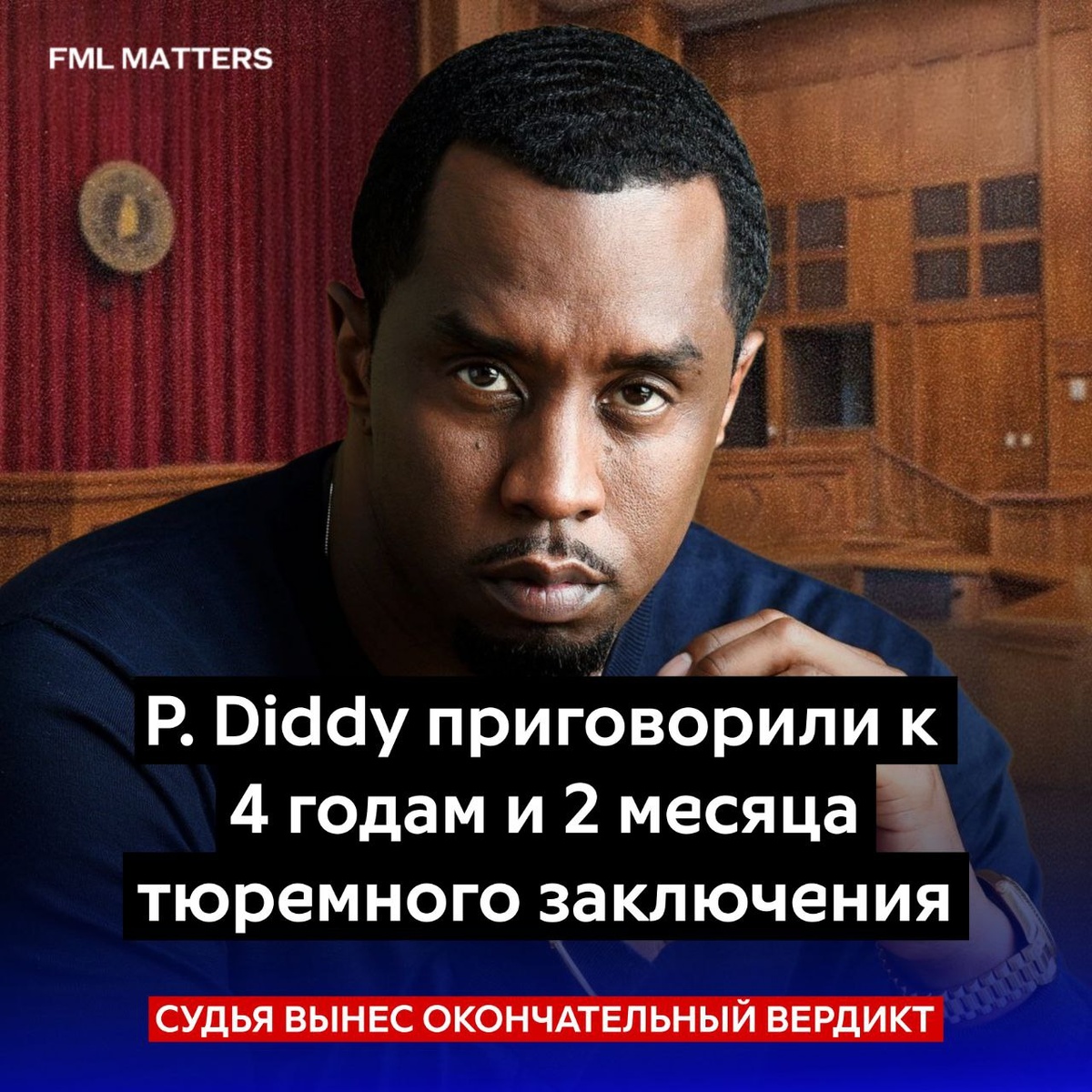 В ответ на пост ‼️ P. DIDDY ПРИГОВОРЁН К 4 ГОДАМ ТЮРЬМЫ! Сегодня суд вынес приговор рэперу и продюсеру Шону «Дидди» Комбсу — 4 года и 2 месяца лишения свободы. Адвокат музыканта Брайан Стил, известный тем, что ранее добился освобождения Тагга, во время своей речи не сдержал слёз. Он заявил судье, что Комбс подвергался давлению за решёткой: «Его пытались подрезать ради уважения в тюрьме. Он питается в основном пакетированной едой — чипсами. Но несмотря на это, Diddy остаётся человеком, оказавшим огромное положительное влияние на Америку» 💀 FML MATTERS