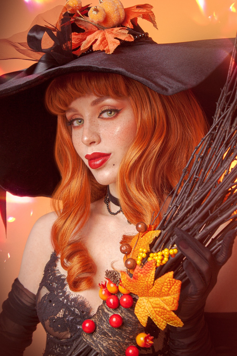 Эта ведьма точно знает, как очаровать взгляд и пленить сердце. Её образ — это взрыв страсти и магии, где каждая деталь пропитана чарами. Чёрная шляпа, кружево и огненные локоны создают идеальный баланс между соблазном и силой. Глядя на такую волшебницу, хочется поверить, что полёт на метле может быть по-настоящему жарким. Персонаж: Ведьма