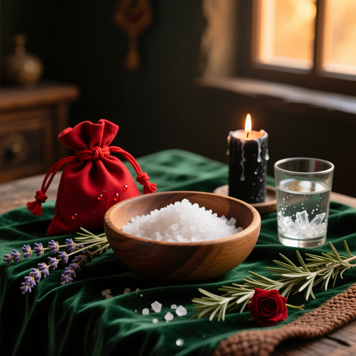 Наполните небольшой мешочек из натуральной ткани (хлопок, лён) крупной солью. Завяжите его красной нитью (7 раз — символ завершённости). Можно добавить немного лаванды, розмарина или сухой ромашки для усиления защиты.