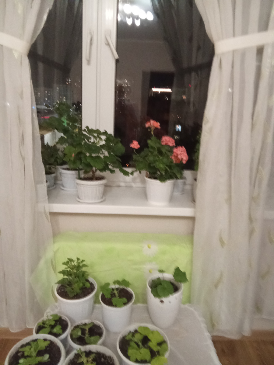 Люблю цветы очень и занимаюсь ими всю жизнь. У нас наступил отопительный сезон. В квартире ещё не было холодно, поэтому мне это событие не совсем понравилось. Больше всего беспокоюсь за свои цветочки. Всё лето прячу их от яркого солнца, зимой от тепла, которое поступает от комнатных батарей. Дочь с мужем помогли помыть окна снять и повесить постиранную тюль. Батарею закрыла покрывалом. Всё ради цветов. Цветы цвели всё лето, сейчас вторую неделю отдыхают. А у дочери цветы, наоборот, все зацвели, как весной. Я рада очень и немного завидую ей. Королевская герань Красная герань Королевская герань Фиолетовая герань Розовая герань У дочери очень удобный и красивый балкон. Может поэтому у нее цветы так хорошо цветут. Дочь меня превзошла. Так и должно быть. Балкон и цветы моей дочери. Теперь начинаю работу над новой скатертью. Дочь купила ткань. Я обработала края по краям на машинке, а теперь буду вязать кружево по краю. Потом