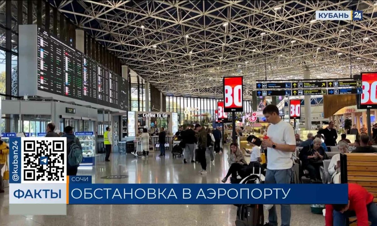 Видео канала «Кубань 24» «Аэропорт Сочи работает по фактическому расписанию. Судя по табло — задержаны рейсы из Самары, Казани, Санкт-Петербурга и Москвы. Обстановка в аэропорту довольно спокойная», — сообщает специальный корреспондент телеканала «Кубань 24» Юлия Проценко. Ограничения в аэропортах Сочи и Геленджика ввели ночью с целью обеспечения безопасности полетов. Утром план «Ковер» сняли. Из-за этого были задержаны вылеты 24 рейсов, в том числе международные. Уже к вечеру задержанных рейсов стало в разы меньше. Пассажиры могут отслеживать всю необходимую информацию по своему рейсу: на онлайн-табло в терминале, а также на сайте аэропорта и авиакомпаний. «На время ограничения в ночное время мы раздавали пассажирам пледы, матрасы, коврики для комфортного ожидания, а также нами были выставлены дополнительные сидения в терминале. Родителей с детьми мы разместили в отдельном помещении для комфортного ожидания своего рейса», — говорит руководитель пресс-службы аэропорта Сочи Юлия Клюева.